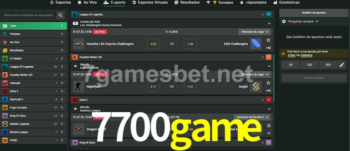 O 7700game oferece uma grande seleção de opções de apostas em e-sports com probabilidades competitivas